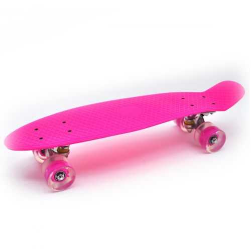 Пенни-борд. Легкая дека сделана из прочного формованного пластика. Длинна деки - 55 см., ширина - 15 см. Колёса PU, d=6 см. Максимальная нагрузка 70-80 кг.