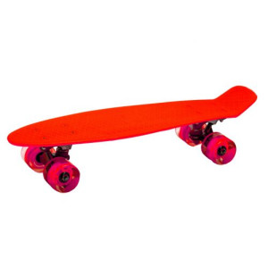 Пенни Борд. Легкая дека сделана из прочного формованного пластика. Подвеска скейта из прочного, но легкого алюминия. Колёса PU, со светом, d=6 см. Максимальная нагрузка до 70 кг.