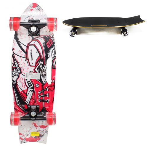 Скейтборд прекрасно подойдет для ребенка. Он небольшого размера. Данная модель достаточно компактная и легкая в освоении и управлении. Маневренность скейта обеспечивается благодаря небольшому весу. Дека овальной формы с приподнятым одним краем. Она оформлена стильными изображениями и покрыта нескользящим материалом. В доске данного скейта располагается отверстие, которое служит ручкой для его переноски. Четыре больших полупрозрачных колеса (PU) светятся во время движения. Диаметр колес: 6 см. Ширина колес: 4,5 см. Ширина деки: 21 см. Длина деки: 70 см. Высота от пола: 10 см; Состав деки: дерево. Подшипники: АВЕС-9. Материал подвески: алюминий. Максимальная нагрузка: 100 кг.