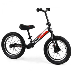 Беговел - велосипед без педалей и трансмиссии. Совмещает в себе черты велосипеда и самоката: как и на велосипеде, наездник сидит в седле, однако, как и на самокате, он едет, отталкиваясь ногами от земли. Стильный дизайн; надувные резиновые колеса с алюминиевыми дисками (диаметр колес: 14 дюймов); металлическая рама. Длинна беговела - 90 см., ширина руля - 39 см. Максимальная нагрузка - 30 кг.