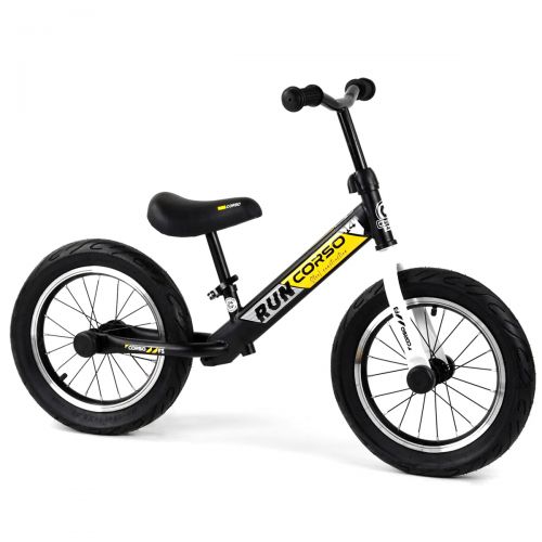 Беговел - велосипед без педалей и трансмиссии. Совмещает в себе черты велосипеда и самоката: как и на велосипеде, наездник сидит в седле, однако, как и на самокате, он едет, отталкиваясь ногами от земли. Стильный дизайн; надувные резиновые колеса с алюминиевыми дисками (диаметр колес: 14 дюймов); металлическая рама. Длинна беговела - 90 см., ширина руля - 39 см. Максимальная нагрузка - 30 кг.