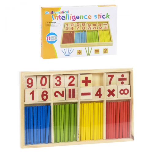 | Комплектация | Счетные палочки, деревянные плашки с цифрами и математическими знаками. |