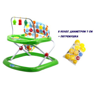 Детские ходунки с интерактивной панелью (погремушка и музыкальный проигрыватель). Выполнены из прочного пластика с металлическим каркасом; сидение - из мягкого материала. Размер ходунков: 50х65х60 см. Максимальная высота от пола - 40 см, минимальная - 30 см. Регулировка высоты: 5 положений. Диаметр колес: 7см.