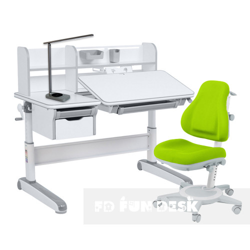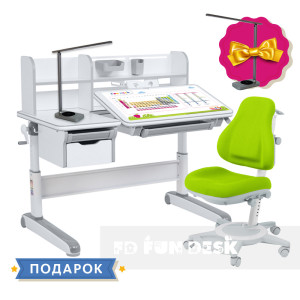 Детский комплект стол-трансформер FunDesk Libro Grey + универсальное кресло FunDesk Bravo Green