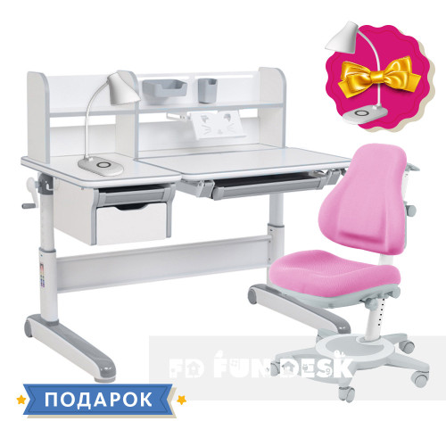 Детский комплект стол-трансформер FunDesk Libro Grey + универсальное кресло FunDesk Bravo Pink