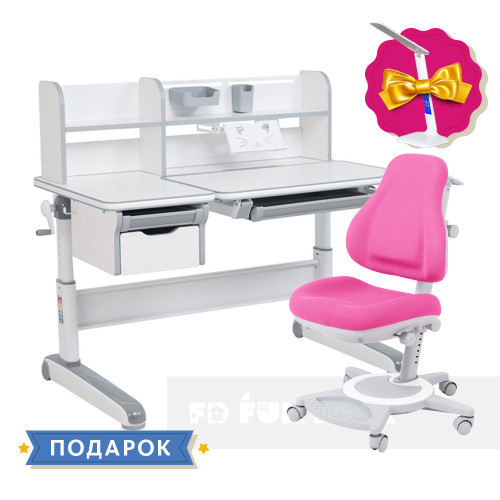 Детский комплект стол-трансформер FunDesk Libro Grey + универсальное кресло FunDesk Bravo Pink