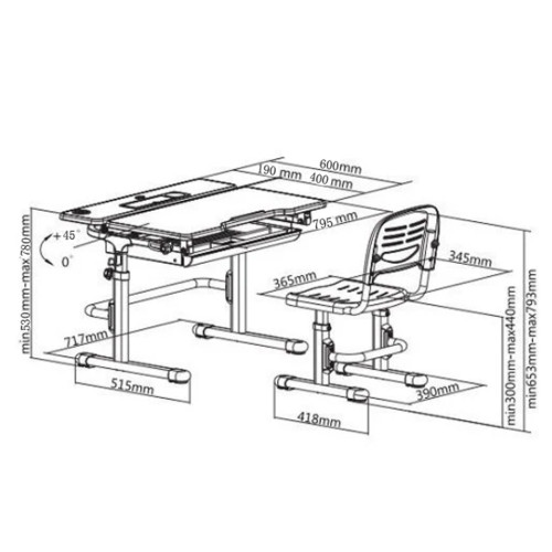 Столешница размером 795x620mm, позволит ребенку правильно распределить рабочее пространство, а выдвижной ящик-органайзер позволяет держать все под рукой ( детские тетради, материалы для творчества, канцелярию)