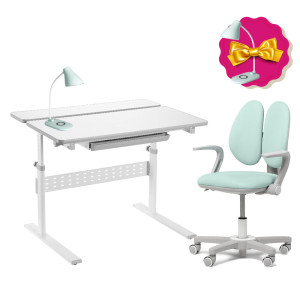 Комплект для школьника парта Fundesk Colore Grey + кресло Fundesk Mente Dark Green