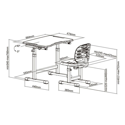 | Габариты стола (ШхГхВ): | 664x474x540-760 мм |
