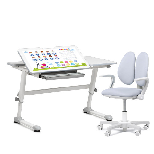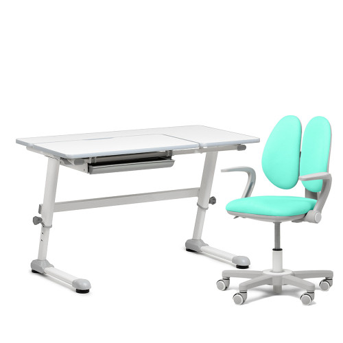 Парта имеет широкую столешницу 1200*600*18 мм, угол наклона которой можно легко регулировать, под все занятия ребенка.