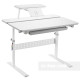 Столешница разделена на две функциональные зоны: одна рабочая поверхность с изменением угла наклона, а вторая часть-неподвижная, где можно расположить все необходимые предметы для учебы: настольную лампу, стаканчик для карандашей, книги, гаджеты и многое другое, что бы всегда было под рукой.