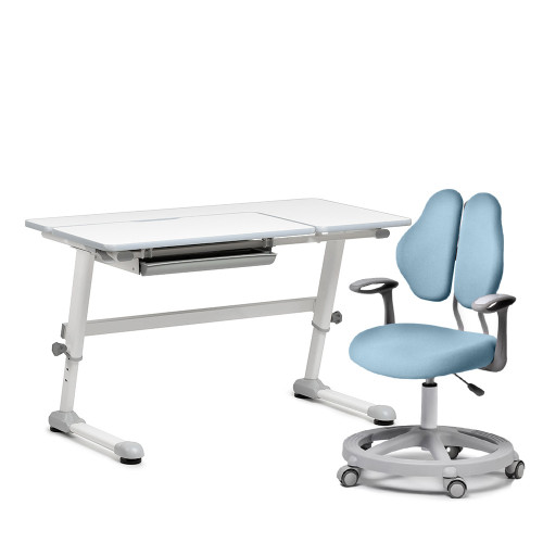 Парта имеет широкую столешницу 1200*600*18 мм, угол наклона которой можно легко регулировать, под все занятия ребенка.