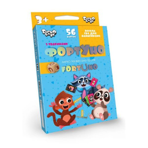 Увлекательная и интересная детская карточная игра. Основная цель каждого игрока - избавиться от всех карт. В ходе игры нужно учитывать сходство цветов, изображенных цифр и животных. В игре, так же, есть кубик с изображением дополнительных заданий и специальная карта 'ФортУно'