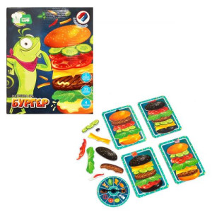 Настольная мгнитная игра 'Бургер'. В игре могут принимать участие 2-4 игрока. Каждый игрок, по очереди, крутит колесо фортуны, и выполняет действия, которые указаны на колесе (выбирает тот, или иной ингредиент). Победит тот, кто быстрее соберет бургер. Для детей от 3-х лет.