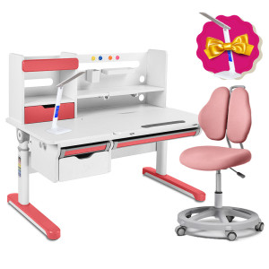 Растущий комплект для школьников парта FunDesk Sentire Pink + подростковое кресло для дома Pratico II Pink
