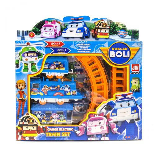 В наборе есть: 8 элементов путей, локомотив, 2 вагона. Размер дороги - 53 х 25 см. Поезд работает от батареек.
