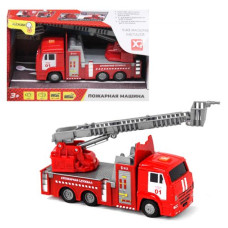 Пластиковая пожарная машинка. У машинки инерционный механизм. Есть световые и звуковые эффекты (свет..