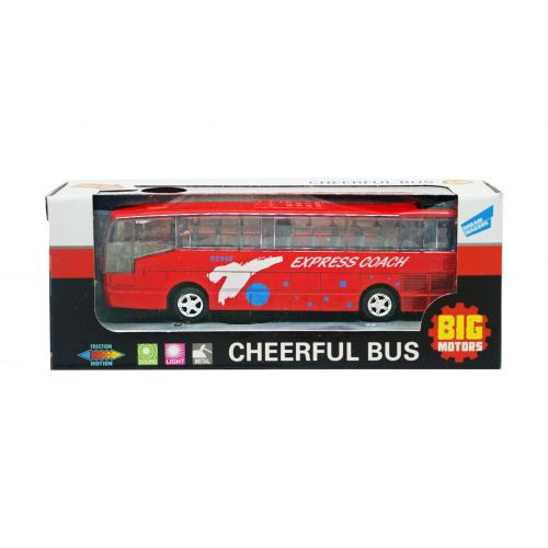 Игрушечная модель автобуса будет хорошим подарком ребёнку. В автобусе есть сидения и кабина водителя. Когда автобус едет - светятся фары и играет мелодия. Размер автобуса - 15х14,5 см., диаметр колес - 1,5 см. Для детей от 3-х лет.