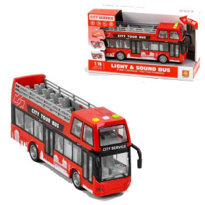 Пластиковая машинка 'Автобус' будет отличным подарком для малыша. Есть световые и звуковые эффекты: светится кабина, звук мотора. Размер автобуса - 26х11 см. Выполнено из качественного пластика. Для детей от 3-х лет.