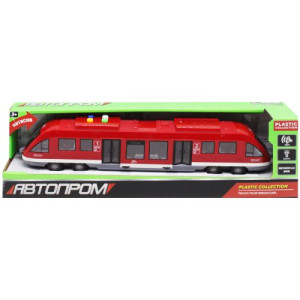 Яркий пластиковый электропоезд. Машинка инерционная, оснащена звуковыми и световыми эффектами. У поезда подвижные двери. Работает на батарейках (не идут в комплекте). Размер игрушки 43х9х6 см. Выполнена в масштабе 1:16. Для детей от 3-х лет.