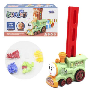 Паровозик, который ставит домино. Игрушка оснащена необычным механизмом, который самостоятельно выстраивает костяшки на нужном расстоянии. Когда фигурка готова можно уронить первую доминошку и за ней упадут все остальные. У паровозика также есть специальный отсек, в который можно залить воды, чтобы из трубы шел пар. Размер паровозика: 18х15х8 см. Разные цвета в ассортименте.