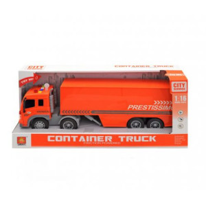 Инерционная машинка 'Грузовик'. Пластиковая машина в реалистичном дизайне, высокая детализация. Дверцы грузового отсека открываются. Со световыми и звуковыми эффектами (звук двигателя, звуковой сигнал, звук работы машины, движение назад). Масштаб - 1:16.
