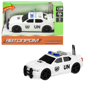 Яркая инерционная полицейская машина. Имеет звуковые и световые эффекты. Изготовлена из прочного пластика. Масштаб: 1:20.