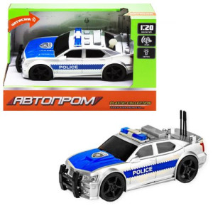 Яркая инерционная полицейская машина. Имеет звуковые и световые эффекты. Изготовлена из прочного пластика. Масштаб: 1:20.
