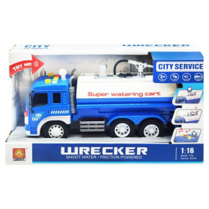 Машина с водяной помпой будет интересным подарком ребёнку. Машина инерционная. Есть световые и звуковые эффекты (светится мигалка, есть звук мотора, сигналит). Так же, есть водяная помпа, которая 'стреляет' водой. Размер машины - 28 х 12,5 см., диаметр колес - 4,5 см. Выполнена из качественного пластика. Для детей от 3-х лет.