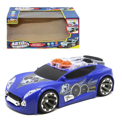Интересная машинка станет приятным подарком для ребенка. Игрушка оснащена звуковыми и световыми эффектами. Светятся фары, имитирует звук езди, играет музыка, на верхней части расположены танцующие динамики. Колеса прорезиненные. На крыше машинки расположены 2 кнопки, с помощью которых можно включить звуковые эффекты и режим езды. Выполнена из прочных материалов. Размер игрушки 26х8х11 см. Работает на батарейках (не идут в комплекте).