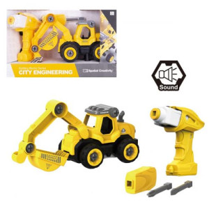 Машинка-конструктор, с дрелью (работает от батареек) и отверткой. Конструктор позволит ребенку почувствовать себя настоящим механиком и с помощью отвертки, собрать и разобрать машину. Машинка со звуковыми эффектами (нужно нажать на бампер).