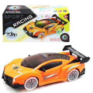 Яркая пластиковая машинка оснащена звуковыми и световыми эффектами. Игрушка работает на батарейках (не идут в комплекте). При работе играет музыка, светится крыша и колеса машинки, свет с фар проектирует картинку. Ездит сама, при попадании на преграду останавливается и объезжает ее. Размер игрушки 23х10х6,5 см. Выполнена из качественного и прочного пластика. Для детей старше 3-х лет.