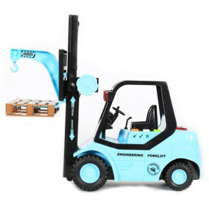 Машина-погрузчик со световыми и звуковыми эффектами (звук двигателя, звуковой сигнал, звук аварийной остановки). Масштаб 1:16. С помощью вентиля поднимается и опускается грузоподъемное устройство с палетой.