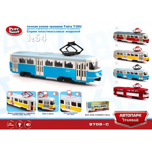 RUS Модель трамвай PLAY SMART 9708C Автопарк инерц.откр.дв.светзв.кор.20*57*77 ш.к./24/