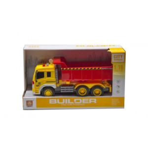 Детская игрушечная машинка-грузовик из серии 'City Service' станет хорошим подарком для мальчика, который увлекается строительной тематикой. Машинка имеет четыре кнопки на кабине машины, которые воспроизводит звуки: заднего хода, работы техники, гудка, запуска двигателя, также присутствую световые эффекты. Кузов машины поднимается. Ездит авто за счет инерции.