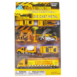 Тематический набор 'Строитель' состоит из шести мини моделей транспорта, светофора, двух фигурок строителя. С этим набором ребёнок может развернуть игрушечную мини стройку.