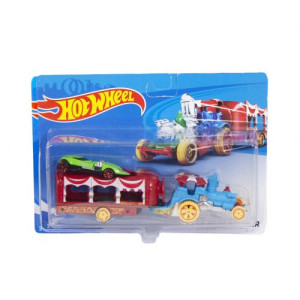 Набор состоит из 1 большой машинки - паровоза 19,5х5 см. и маленькой гоночной машинки (6х1,5 см.) зеленого цвета. В большой машинке можно перевозить маленькую. Выполнены машинки из качественного материала. Для детей от 3-х лет.