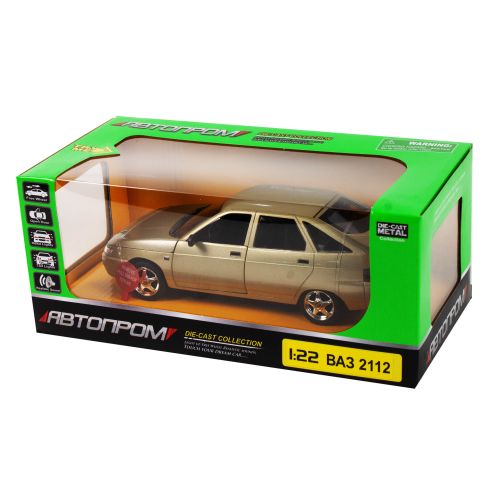 Машинка инерционная 'ВАЗ 2112' из серии 'Автопром', металлическая. Открываются передние двери. Имеет световые (задние и передние фары) и звуковые (звук двигателя, звуковой сигнал автомобиля, сигнализация, звуки движения) эффекты.