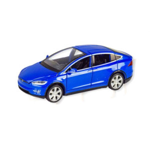 Машинка 'Tesla Model X' из серии 'Автопром'. Металлическая, инерционная, очень детализированная машинка. Светятся передние и задние фары, реалистичные звуковые эффекты. Открывается капот и багажник, а также передние и задние двери. Масштаб - 1:32.