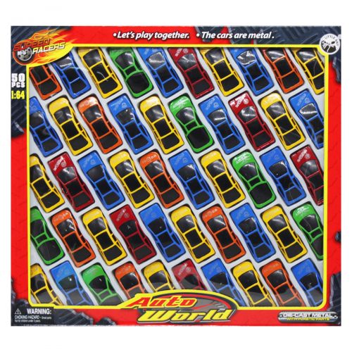 Большой набор металлических машинок. Аж 50 штук в комплекте. Длинна 1 машинки - 6,5 см. Масштаб - 1:64. Выполнено из качественного, прочного материала.