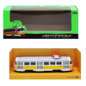 Трамвай инерционный из серии 'Автопром'. Выполнен из качественных и безопасных материалов, высокая детализация. Длина трамвая: 15 см.