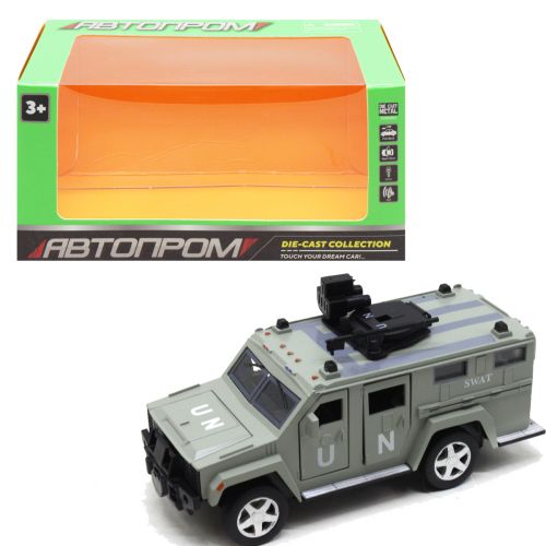 Инерционная военная машинка. Высокая детализация. Открываются передние двери, есть световые и звуковые эффекты. Масштаб - 1:32. Размер игрушки 11х5х5 см. Выполнена из качественного и прочного материала.