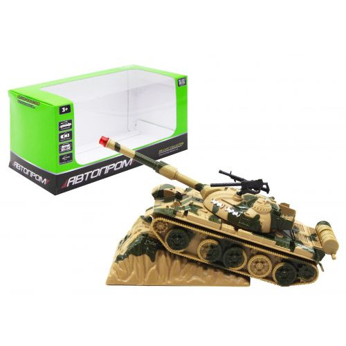 Металлопластиковый танк 'Автопром'. Инерционный. Есть световые и звуковые эффекты (светится дуло танка, свук стрельбы.). Размер танка - 17х10 см. Выполнен из качественных и безопасных материалов. Для детей от 3-х лет.