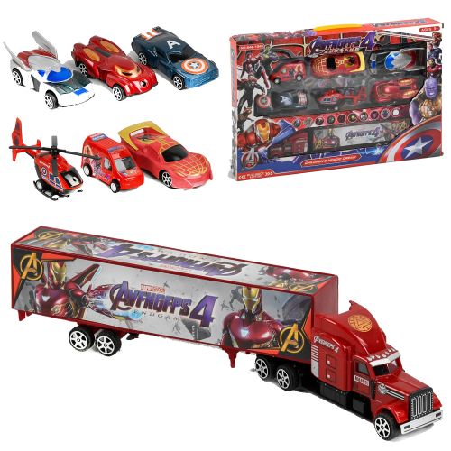 95298 [564-124K] Набор машинок 564-124 K (48/2) “Супергерои” 2 цвета инерция трейлер 5 машинок вертолет в коробке [Коробка]