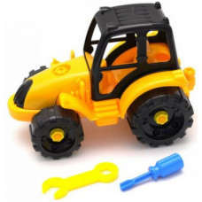Пластиковый трактор. В наборе идут: отвёртка и ключ, с помощью которых можно откручивать части машин..