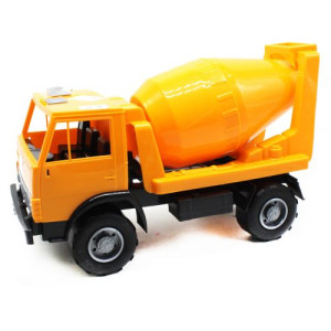 Яркая пластиковая машинка-бетономешалка, можно вращать барабан.