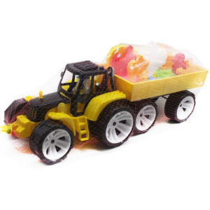 Детский игровой набор, в который входит: трактор с прицепом, фигурка водителя, пластиковые фигурки животных (петух, собачка, кролик, котик, уточка, свинья и баран). Фигурки животных крепятся на специальную подставку-пазл. Размер трактора с прицепом 53х22х20 см. Прицеп можно отсоединить и играть отдельно.
