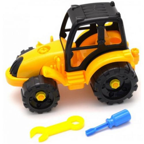 Пластиковый трактор. В наборе идут: отвёртка и ключ, с помощью которых можно откручивать части машинки.