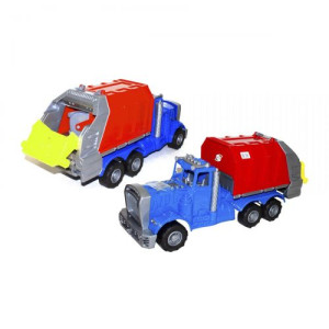 Автомобиль имеет открывающееся багажное отделение, куда попадают мусорные баки (бак в комплекте). В кузовное отделение мусоровоза установлен механизм выгрузки. Высокая детализация, качественный пластик.