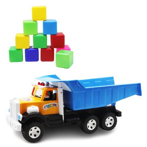 Машинка 'Самосвал Фарго Бамсик' (разноцветные кубики 11 шт. в комплекте). Откидной кузов для удобной выгрузки. Пластик.